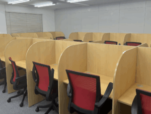 自習室は完備されており、個別に仕切られたブース型が中心です。静かな環境で集中できますが、大手予備校の浪人生専用自習室ほどの席数や規模ではない場合があります。