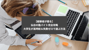 仙台で塾バイトを探す大学生へ。塾バイトのメリット・デメリット、時給相場、個別指導・集団指導・オンライン指導との比較、実質時給の計算方法、エリア比較、面接対策、ブラック回避法まで完全解説。東北大生・宮教大生必読。塾バイト経験者が徹底解説します‼
