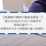 ・数学:問題を読んで3分考えても手が出なければ、すぐに解答解説を読みましょう。解説を読んで理解したら、一度本を閉じ、白紙のノートに自力で数式を最後まで書き切れるかテストします(これを「セルフレクチャー」と呼びます)。